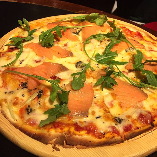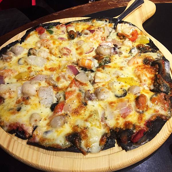 外皮的邊不是烤焦,是以墨魚汁當披薩皮