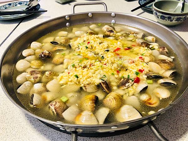 湯底加了很多大蒜,喝一口湯,蜆的鮮甜與蒜味融合,天然的海味!