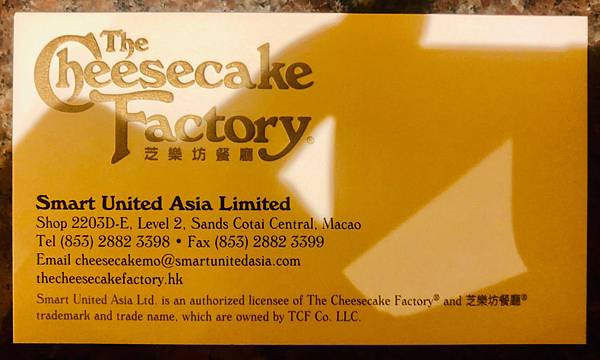 美國有名的芝士蛋糕餐廳-芝樂坊 (Cheesecake Factory) 正式登陸澳門啦,進駐在位於路氹城的酒店-金沙城中心。(位置就在Apple store蘋果公司的隔壁而已,很好找的)