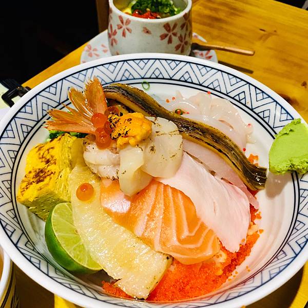 兵衛丼算是這裡的招牌海景丼,有海膽、帶子(干貝)、蝦、三文魚(鮭魚)、左口魚(比目魚)、吞拿魚(鮪魚)、星鰻、三文魚籽、蝦卵、玉子等食材組成的豪華海鮮丼飯,有沒有令你覺得食指大動呢?!