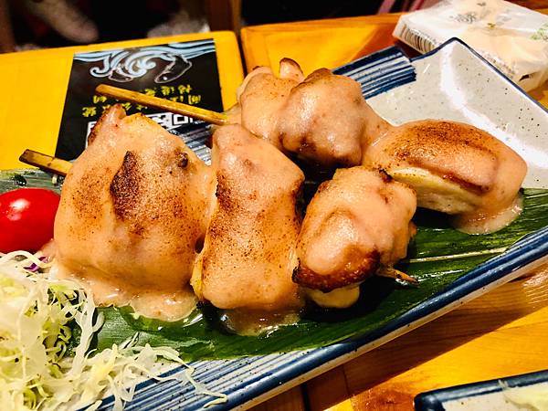 雞肉串的明太子因為加熱全部融化在一起,賣相沒那麼好看,但是雞肉味道是好吃的。