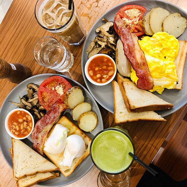 很巧的是,桃桃和朋友都選擇了英式早餐,差別在於...一個是炒蛋,一個是水波蛋。