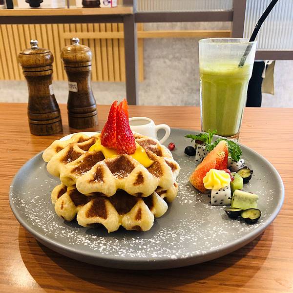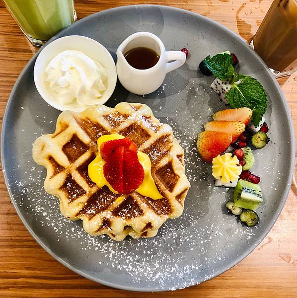 比利時華夫餅waffle,很適合當下午茶的甜點,重點是擺盤精緻,很有法式甜點的擺盤,讓人看了賞心悅目,不由得吃很多。
