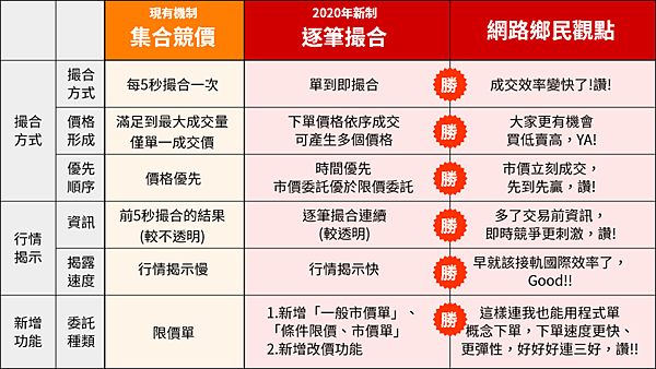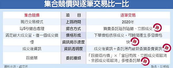 逐筆交易與集合競價之比較: