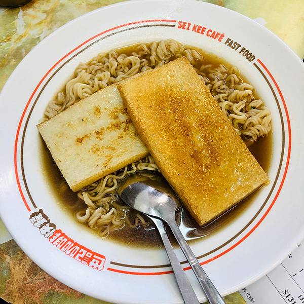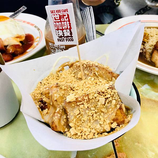 這裡的奶油方塊多士和外賣店的方塊多士不太一樣,這裡的size比較大塊,中間有夾一層花生醬,比較偏向一般澳門茶餐廳的西多士,但是上面撒了花生脆脆。