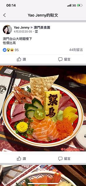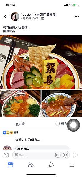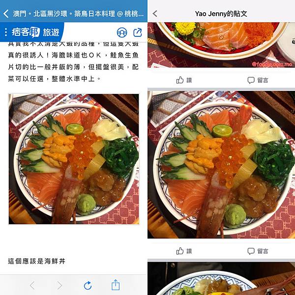 昨天,朋友傳來以下的照片給桃桃,聽說在FB的澳門美食版上,有人直接貼上桃桃的圖,推薦築鳥日本料理..... 。為什麼要偷別人照片假裝自己吃過?Jenny小姐請回答?