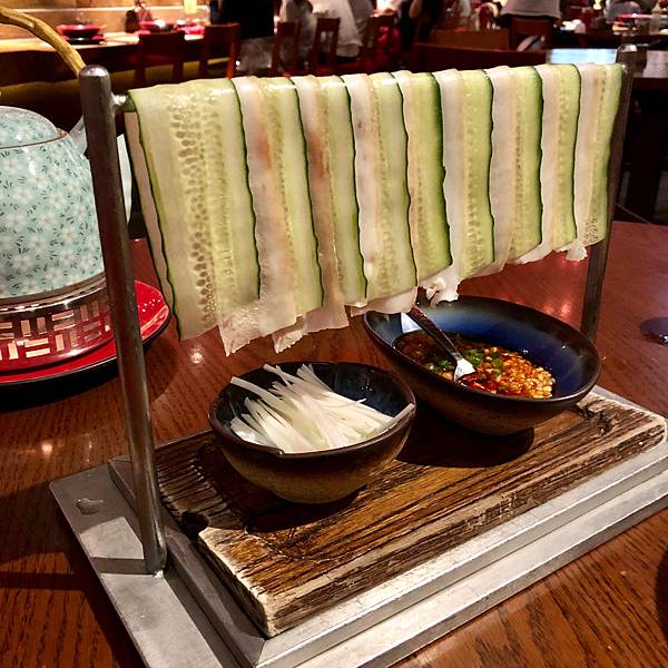 薄片的豬肉,搭配清爽的小黃瓜,加上特製蒜泥...讓人回味無窮!