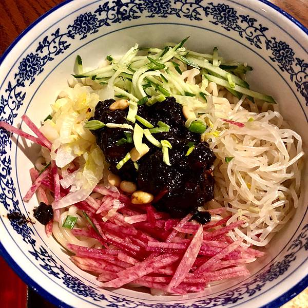 炸醬麵的麵條很有Q勁,不愧是師傅現場製作!只是炸醬味道太鹹,拖累了麵條,死鹹的口味桃桃個人不愛。