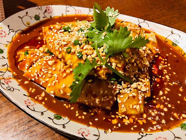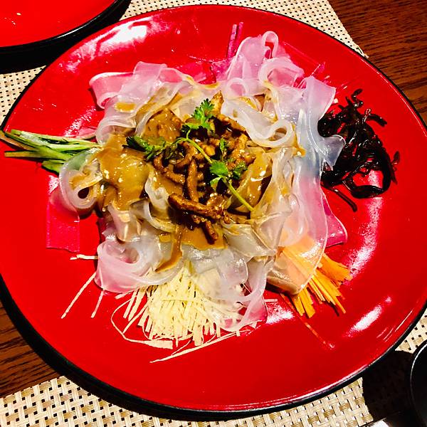 其實就是涼拌粉皮,醬汁是芝麻醬,粉皮Q彈而有嚼勁,醬汁開胃,稱得上一盤開胃菜。