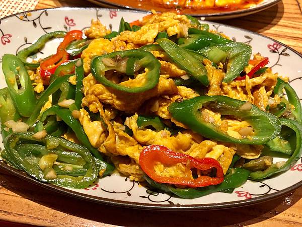 當初點這盤,是桃桃男友看到隔壁桌點了這盤很吸引人,因此也試了一下... 蛋不會太老,配上青椒其實味道還不錯。(其實桃桃沒有很愛吃青椒)