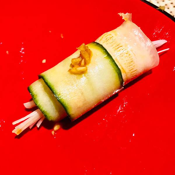 經過多次練習(桃桃來北方館有十次以上了吧!),終於成功捲成完美的青瓜白肉捲啦!