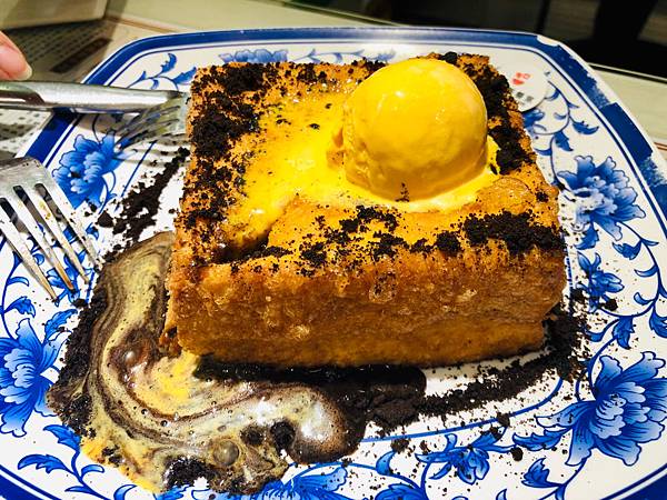 至於味道嘛!大概就跟小當家一樣... 吃了一口心裡浮現大大的美味二字,太好吃了!西多士的酥脆外皮,與芒果冰淇淋的撞擊,冰與熱的冰火滋味絕配,遇上巧克力流沙,味道剛剛好,不甜不膩,原本以為巧克力會很甜,但是店家應該是用黑巧克力中和,所以即使配上融化後的冰淇淋,也不會覺得甜膩,是桃桃推薦必點不踩雷的甜點!