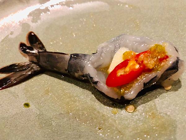 這是桃桃在泰式餐廳必點的菜色,有點類似日本生魚片的生蝦,沾上泰式醬汁,超美味!