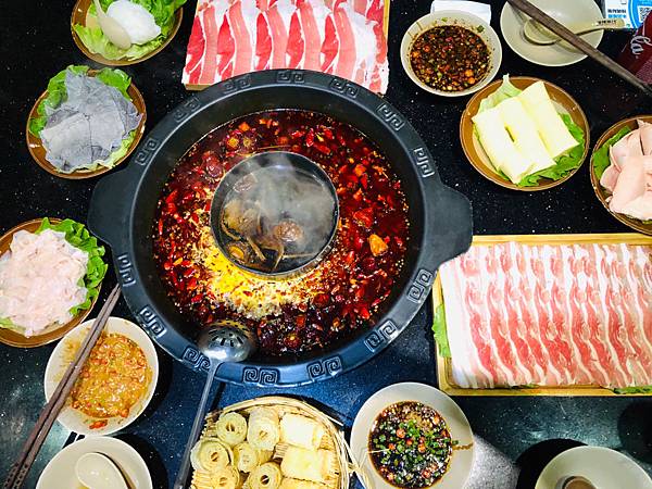 湯頭還好,鍋底有兩個選擇,九宮格和母子鍋,九宮格全部都是辣的,母子鍋才有兩種口味。辣鍋有小辣、中辣和大辣(大辣又叫地獄辣),地獄辣的價格會貴一些,不辣的鍋都是同一種-菌王菇湯。
