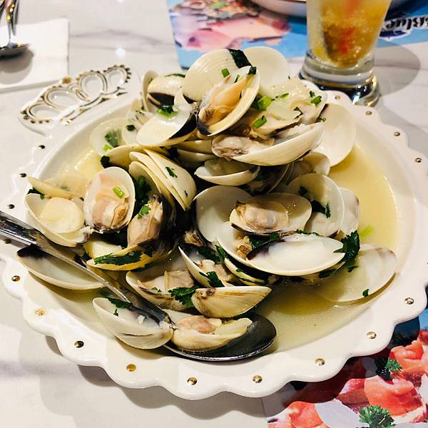 用白酒和蒜簡單調味,最能帶出海鮮的鮮甜;只是這道料理味道有點淡,桃桃不愛。