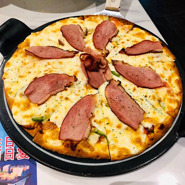 忘了是什麼披薩了...好像是鴨胸。不過桃桃記得最好吃的是披薩,因為桃桃喜歡薄皮披薩,而且又有厚厚的起司(芝士)覆蓋,餅皮很脆、搭配牽絲的起司,絕配啊!