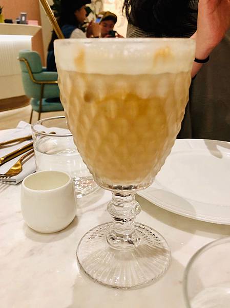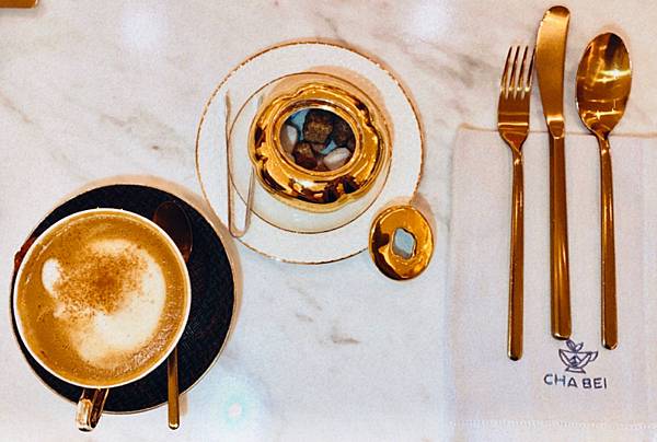 菜單封面用的是Tiffany藍的粉淡藍綠色,餐具都用金色,在柔和中增添一絲貴氣!