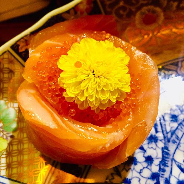 桃桃很喜歡花之戀壽司,因為桃桃愛鮭魚,每一間花之戀壽司都不太一樣,有的上面放鮭魚卵、有的放蝦卵,桃桃覺得鮭魚卵或蝦卵入口後爆開,與三文魚絕配。