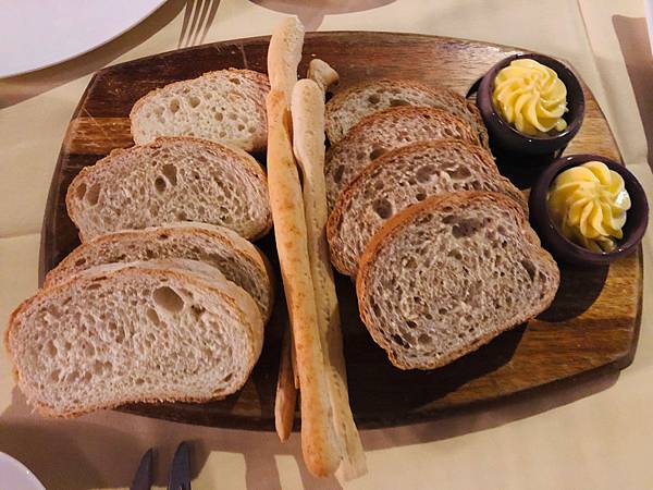 餐前麵包提供三款不同口味的選擇,可以抹上奶油提味。